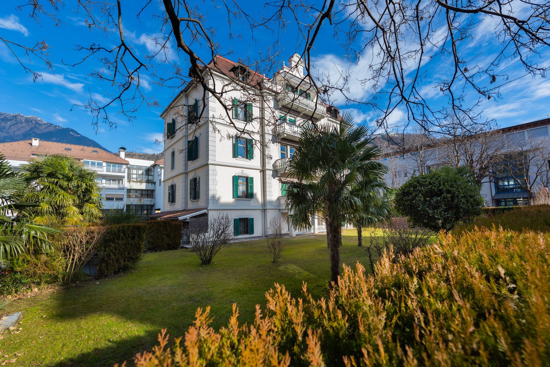 a due passi dal centro storico con i suoi portici medievali e gli eleganti edifici in stile liberty e le Terme di Merano, un gioiello di design incastonato nel cuore della città. I due appartamenti appena ristrutturati arredati con molto gusto, sono attrezzati con tutti i confort (bagni privati, asciugacapelli, TV a schermo piatto, frigo bar , internet wi fi, lavastoviglie) e vi garantiranno un tranquillo e piacevole soggiorno. Ogni appartamento dispone di un suo garage privato sotterraneo (altezza max. 210cm) così puoi dimenticarti e lasciare l’auto per tutto il periodo del tuo soggiorno in garage. Ci troviamo a 800 metri dalle Terme di Merano e a 400 Metri dai portici (Paradiso dello shopping, ricca di ristoranti, antichi caffè e punto d'incontro e ambiente medievale) in pieno centro storico. La stazione dei Treni e Bus dista soltanto 700 metri da dove partono i treni e i bus per raggiungere le più belle località limitrofe come Tirolo con il suo castello medievale e Merano 2000.